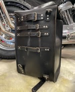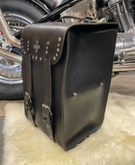 Has 2 holes on one side of the sissy bag to attach a smaller box leather bag with nut & bolt attachment for extra storage.